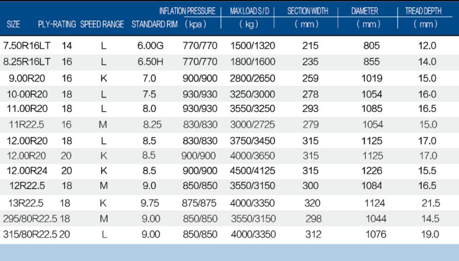 The main features:Superior abrasion, well heat dispersion, excellent driving and braking performance, well loading capacity.Application condition:Suitable for well paved roads and mixed roads. For short and middle distance vehicles.